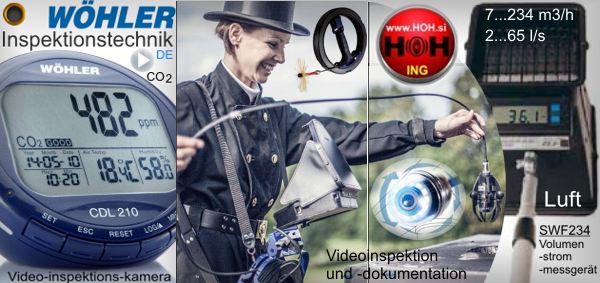 za pregled kanalizacijskih cevi, zračnikov, dimnikov v dolžini