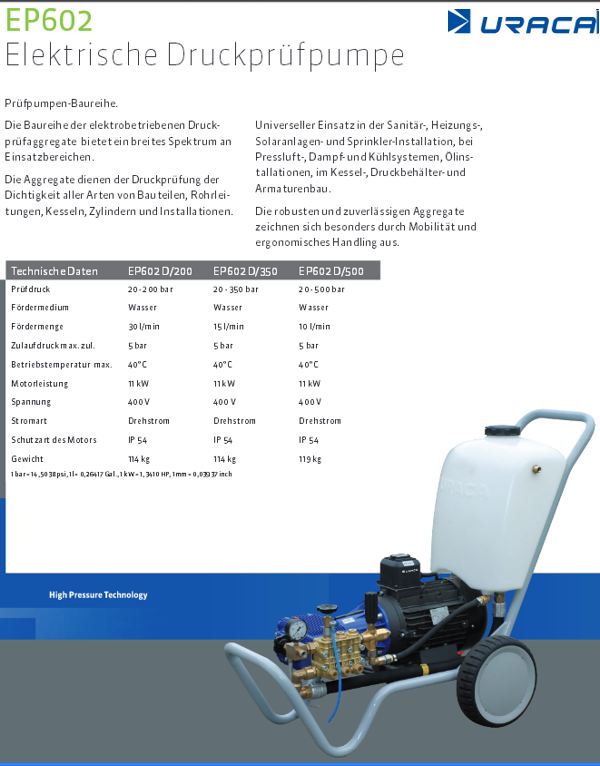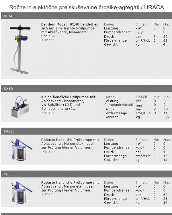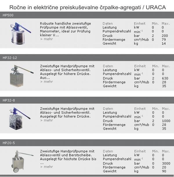 URACA visokotlačne ČRPALKE od 2 do 3000 bar.